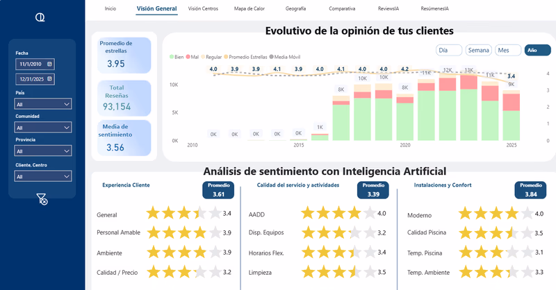 Reviews IA analiza automáticamente y en tiempo real las opiniones de tus clientes en Google Maps y el perfil de empresas de Google. Transformamos ese inmenso volumen de texto en información clara, visual y, lo más importante, accionable, permitiéndote una gestión de Google My Business eficaz.
